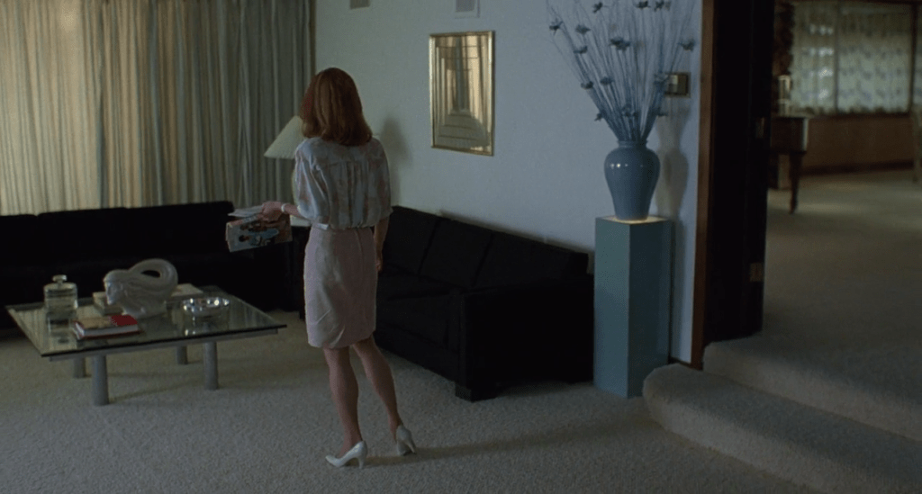 What pleasantly surprised me about the film was the mastery with which Haynes crafted the shots so that the most banal of things – sometimes even emptiness itself – were presented as a potential threat to the protagonist. Carol was frequently positioned in the center of vast, austere rooms with muted tones and gathering shadows, including in her home, supposedly the safest space. She also appeared consistently apart, even with her husband asleep in the bed beside her or with a house full of workers, which evoked the isolation that is intrinsic to having a chronic illness, especially a more or less invisible one. To someone like me, it mattered little that Carol’s potential plight was a weakened immune system and that mine is an overactive one; the commonality, and the element that arguably qualifies this as a horror movie, is the un-diagnosable ambiguity of it all. What physical revolt or deterioration will happen next, and what will set it off? What is a real threat? Can the threat change? The boogeyman is invisible and, to most, benign.