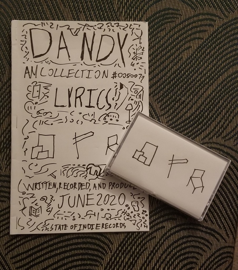 At this point it appears that, though I sat down to write an album review, I am instead writing a review of Dandy’s body of work and my experience of discovering it. That being the case, I should mention the song in which the artist might be said to have outdone himself (though it does not appear on my cassette, but on the release Ugly People Write Ugly Songs): the narcotic, almost darkwave – yes, darkwave – “Tragic Figures”. A divergence from the other material, this one has Joy Division-meets-The National vibes and somehow looms larger than the rest of the catalog – maybe because it betrays a genre-hopping versatility that could very well be a preview of things to come.