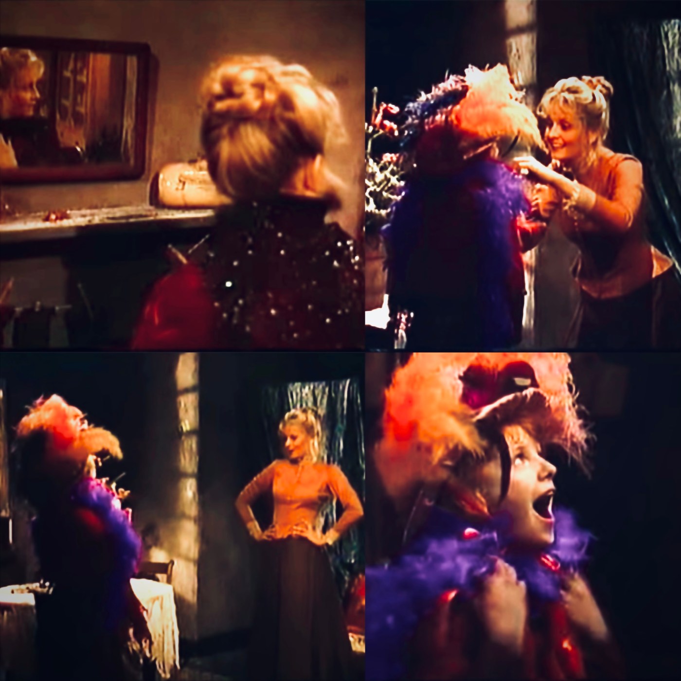 -There’s a running theme of painting on a coat of fabulousness and peacock-strutting to deal with pain (Natalie’s hand-me-down red shawl, Josie’s music hall costumes, Jeb’s top hat, even Arthur’s apprentice-butler uniform). Of course this is also intertwined with issues of class and aspiration, but I’m convinced this movie whetted my appetite for glam rock (as well as drag and some burlesque). Here’s a seemingly relevant quote from Todd Haynes, director of Velvet Goldmine (1998), a film that’s essentially a Valentine’s card to the early 1970’s British glam movement: