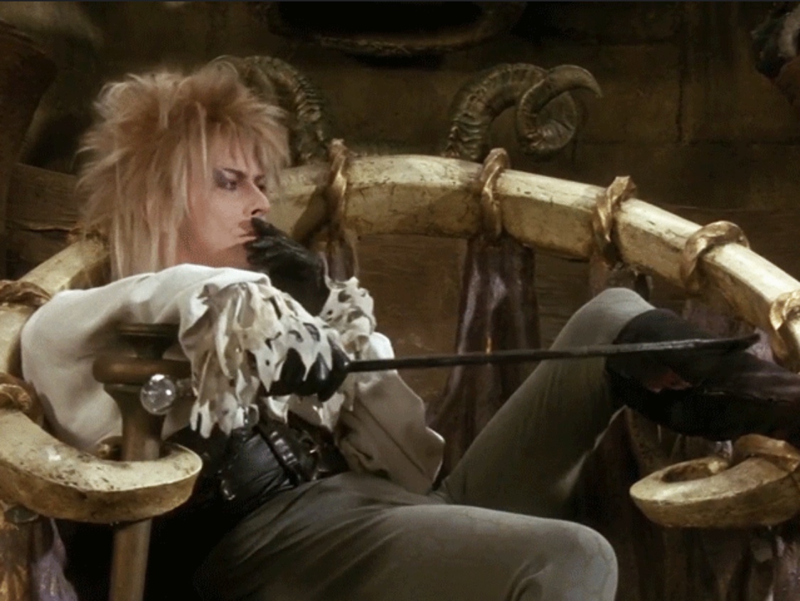 Now, I’ve managed to sound pretty high and mighty here. I may know better than to share the delusional interpretation of some of my peers – but has it ever been easy for me to turn off my reptilian brain when confronted with the drug-like highs and lows of inconstant behavior, in the face of the daily grind and the perseverant march of time? Of course not. And I have Jareth (along with a few other formative influences, no doubt) to thank for that.